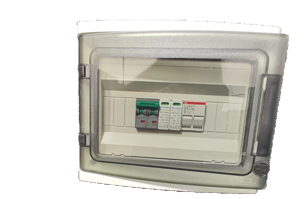 Quadro elettrico di protezione 1 stringa 600V precablato specifico per proteggere l'impianto fotovoltaico lato pannelli fotovoltaici da cortocircuiti e scariche tensioni.